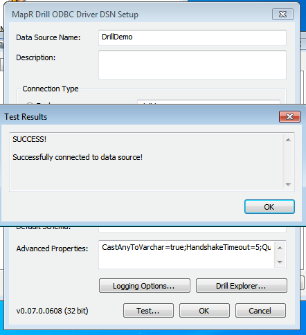 Drill uses standard ODBC connectivity to provide easy data exploration capabilities on complex, schema-less data sets. Verify that the ODBC driver version that you download correlates with the Apache Drill version that you use. Ideally, you should upgrade to the latest version of Apache Drill and the MapR Drill ODBC Driver.