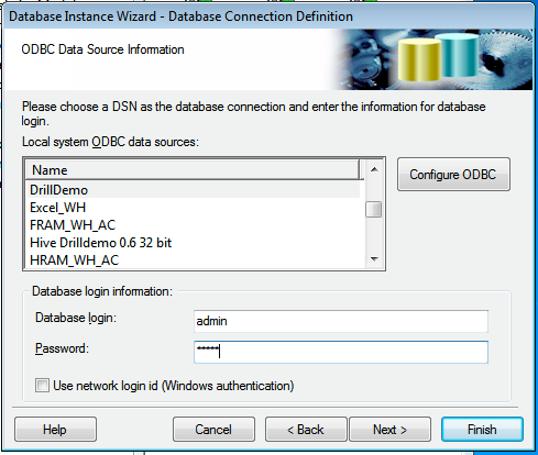 4. Select the ODBC DSN that you configured with the ODBC Administrator.