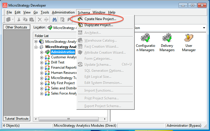 1. In MicroStrategy Developer, use the Project Creation Assistant to create a new project.